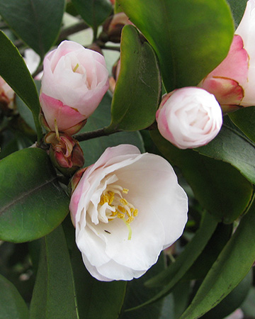 主要形態特征:花粉白色,花瓣基部具深粉紅色條紋,單瓣,小花型,平均花徑2.79cm,花瓣5枚。多枚花蕾頂生或腋生,開花極其繁密?;ㄆ?月下旬-4月,長達40天左右。嫩葉紫紅色,成熟葉片濃綠色...